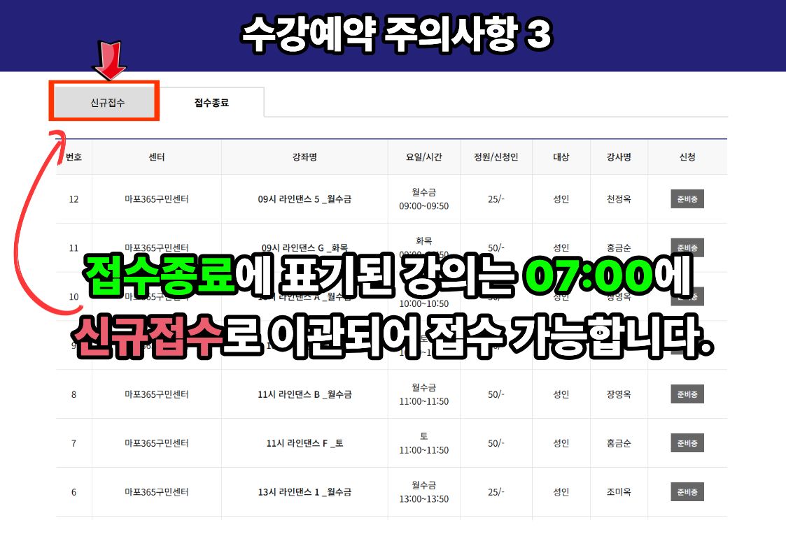 [필독]마포365구민센터 4차 접수 시 주의사항 1